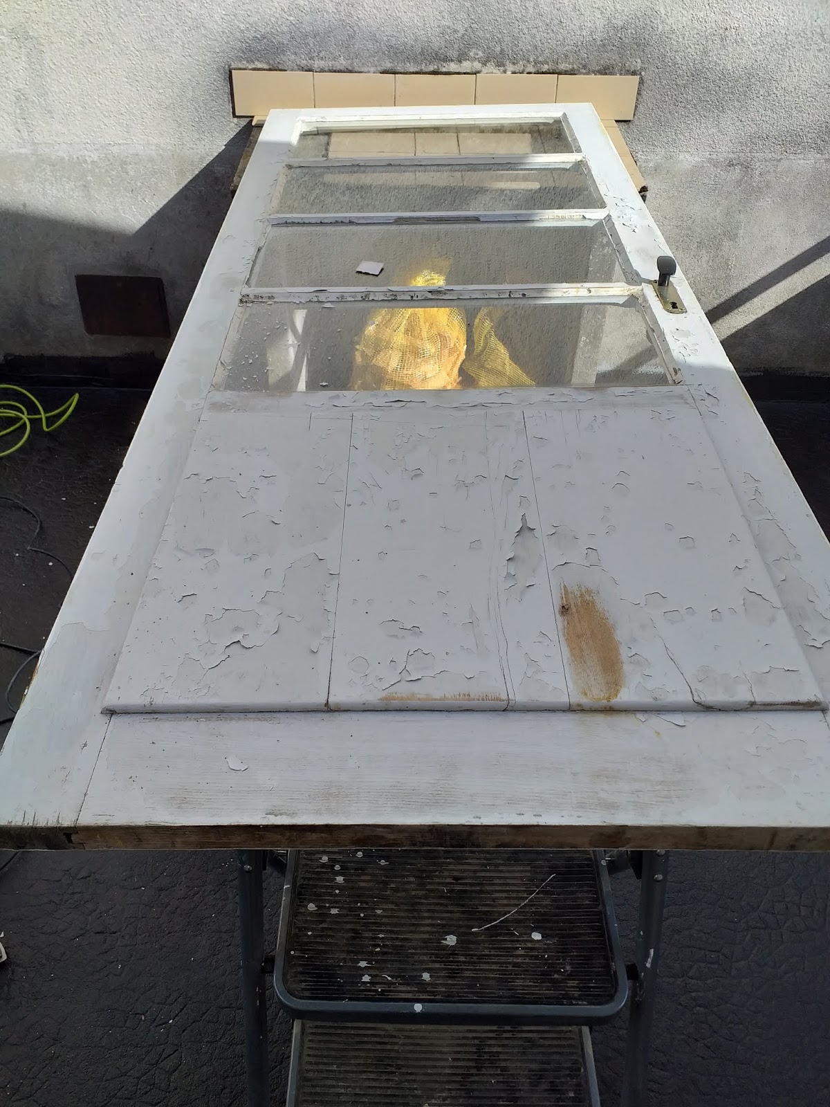One of the prime objectives was to get the ground-floor ready for Natasha, Tom and granddaughter Serena coming over in July. The beds were for them and we had a door and two large shutters to paint - especially the shutters as they were in a state of poor repair and covered in flaking lead paint.